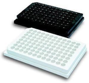 The Krystal™ microplates are supplied white for luminescence/ fluorescence or black for fluorescence assays. Clear well bottoms allow for use with instruments that read above or below the plate. Three formats are available to meet a range of applications: 384 x 120 µl/well, 96 x 350 µl/well and 24 x 3 ml/ well. All can be ordered tissue culture treated. The 24 well plates are also available with a high binding irradiated surface. Both the 384 well and 96 well plates are supplied in packages of 100 or in an HTS pack that includes 4 sleeves of 25 tissue culture treated plates with lids. The 24 well plates are supplied 68 plates to a pack with the exception of the tissue culture treated plates which are supplied individually wrapped with lids in packages of 56. Barcoding is available for all plates upon request.
