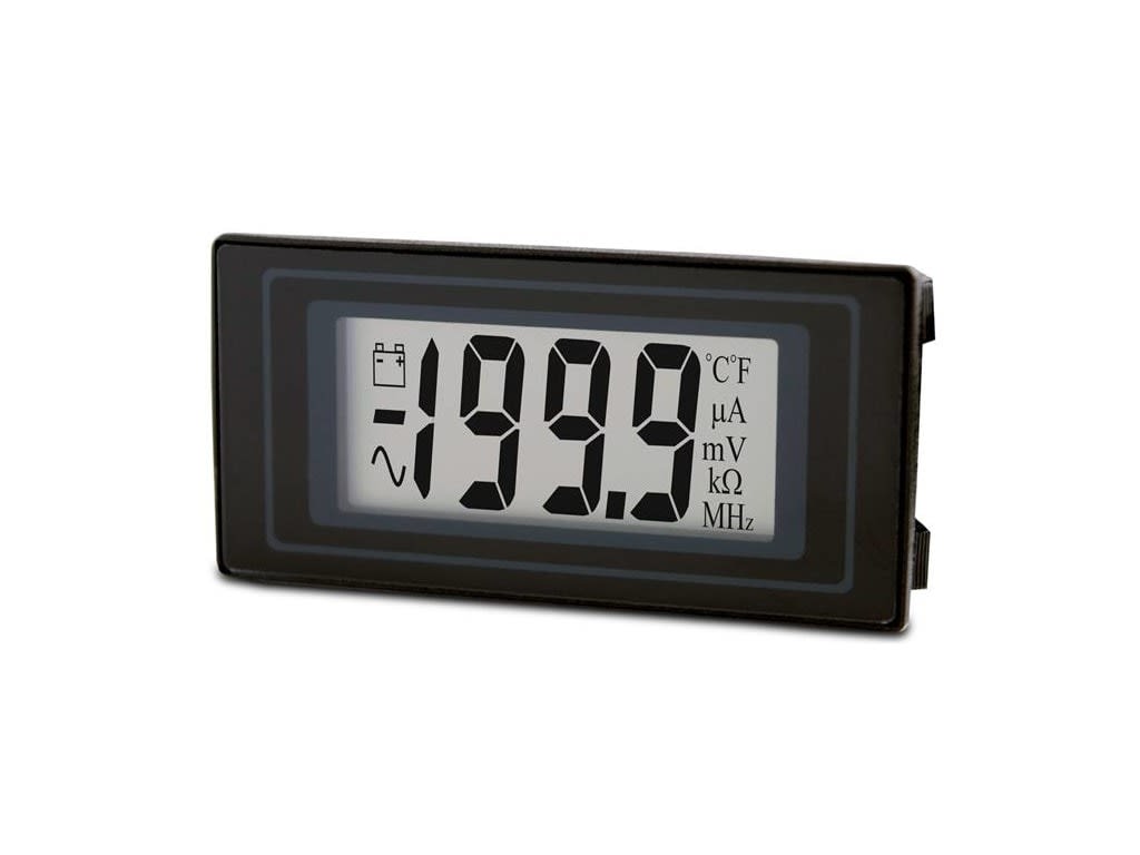 A unique compact LCD meter, ideally suited to low or high volume applications. The meter has a 28 pin DIL integrated circuit format and can be plugged directly into a DIL socket or panel mounted using the snap in bezel provided. The low profile bezel incorporates a flat reverse printed window, giving a superb appearance that cannot be damaged or removed by contact.
