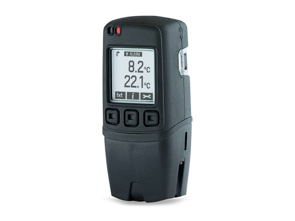 The data logger features a high-contrast graphic LCD and three-input buttons which allows users to start, stop and restart the data logger using on-screen menus. This menu also provides real-time analysis of data either as a data summary (showing highest & lowest readings and alarm conditions) or as a graph that updates as new data is added. The Max and Min readings and also the Time and Date these are valid from, can be displayed on the LCD ( info button). If desired, the user can then reset the Max/Min shown on this screen of the LCD. Each time these maxima and minima are reset whilst logging, an “Event Marker” is created in the data. When the data has been downloaded to a PC these Events can be viewed on the graph (Mark Events), they also appear in the data file - associated with the corresponding log when the reset took place. For certain applications where procedures mandate that a regular physical check of the logger/stats have taken place – this can be useful as an audit / validation tool. Multiple data logging sessions can be stored on the device ready for upload to a PC at a later date.
