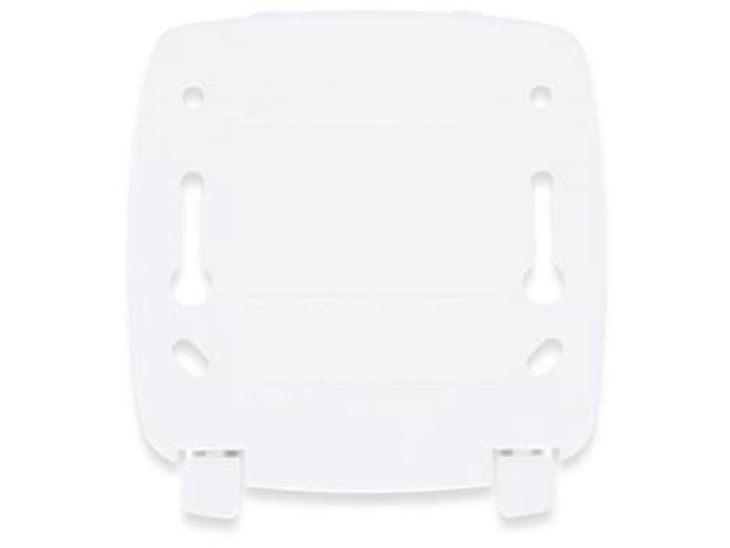 White plastic wall bracket which attaches to the back of your EL-MOTE device. You can then attach your device to the wall using the affixed sticky pad or alternatively can be screwed into the wall through the screw holes in the wall bracket (screws not provided).