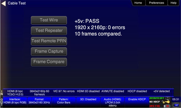 • Protocol tests for digital video sources and displays, including test for HDCP 2.2 authentication