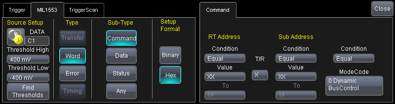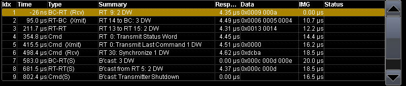 These can be further qualified by selecting the message type: BC-RT, RT-BC, RT-RT, Broadcast. |