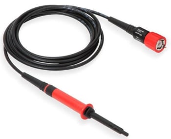 The HVP120 is a high voltage passive probe designed for probing up to 1,000 Vrms and capable of handling up to 6,000 V peak transients. Its fast rise time and excellent frequency response make it suitable for a wide variety of high voltage measurement applications. The HVP120 features a spring loaded probe tip and a variety of standard accessories to make probing high voltages safe and easy.