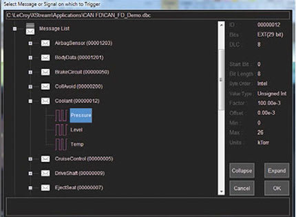 Trigger on All Frames, Frame ID, ID with Data, Remote Frames, or Error Frames. |
