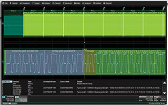 Color Coding for Frame, Group Primitives, Data words, Primitive words, and important frame fields such as address and Ethernet type. Decode information is intelligently annotated based on timebase setting. |