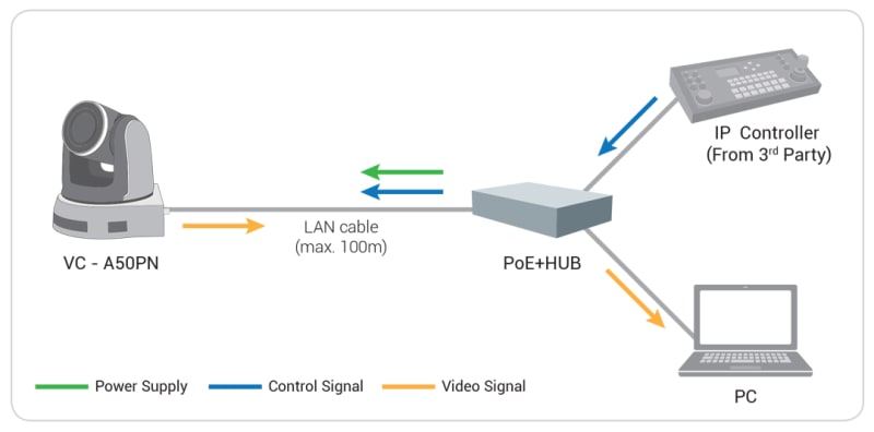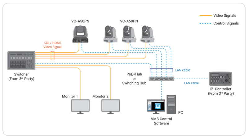 The VC-A50PN can connect directly to a NDI® network, utilizing NDI-based video production workflows without additional configuration, reducing cost and set-up time.