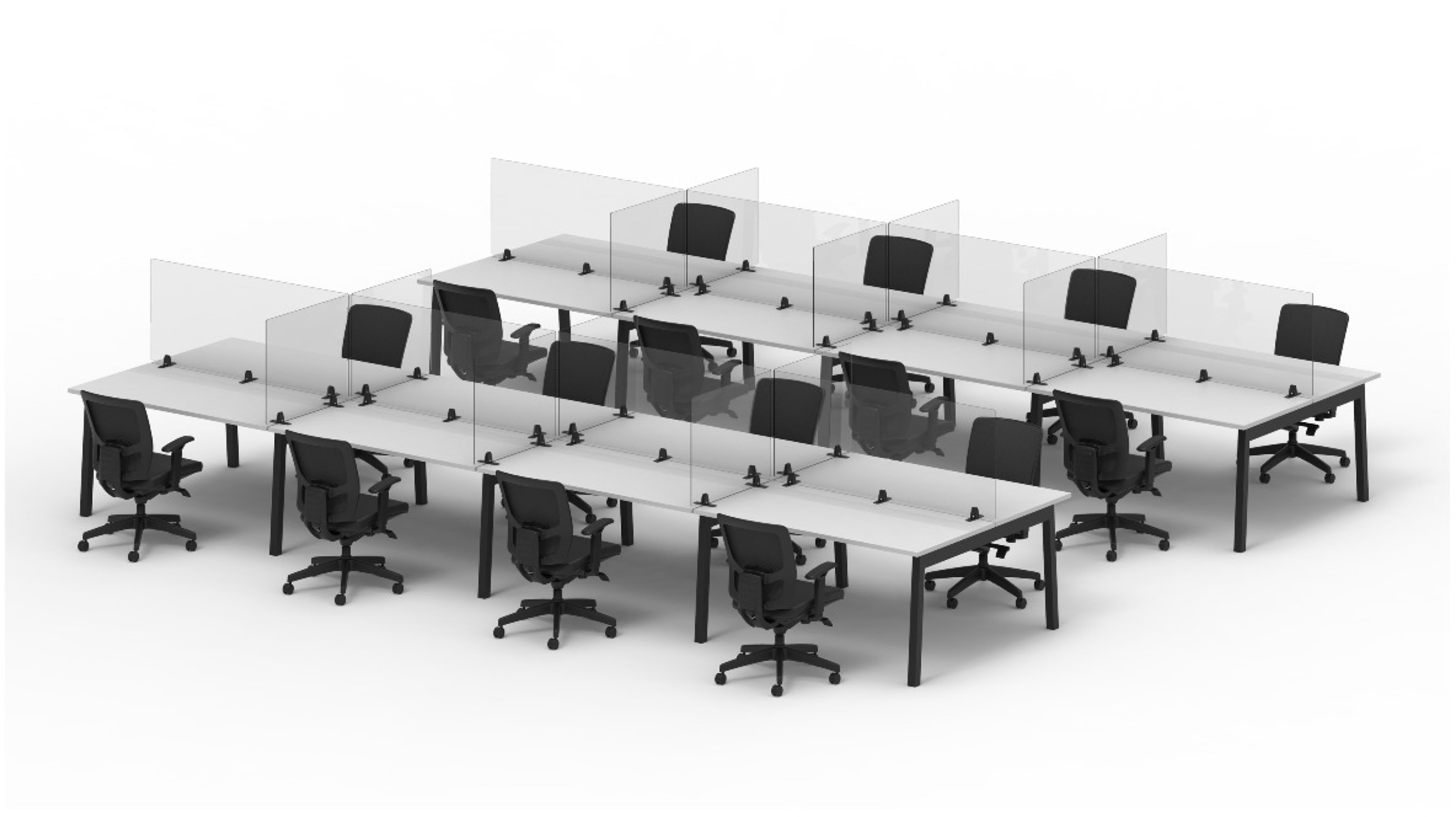 As employees return to the workplace and students return to their schools, we must rethink our environments to help maintain separation and safe distancing. Luxor’s tabletop dividers offer a great option for breakrooms, meeting rooms, and collaborative workspaces. Rising a full 24" or 30" above a tabletop or desktop surface, they are tall enough to help protect from sneezes and coughs. These tabletop dividers are completely freestanding and sit on the tabletop with included feet. There is also a small gap between the panel and table to allow cables to pass through. Several packages available Luxor desk dividers are available in packages containing two side panels and one back panel. These are available in the following formats: