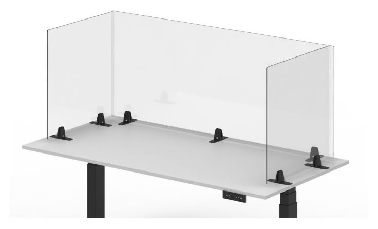 Easy to set up - many configurations possible These dividers are easy to set up and use. Each panel comes with a set of feet, and then are placed on a desktop. They can also be combined with other panels for many different situations. It is possible to divide your space however you need to make yourself and your colleagues safer. The pictures below show a few possible configurations. Panels are sold individually, so you can mix and match to get the perfect fit.