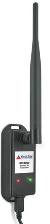 The MadgeTech’s new RFC1000 is a powerful wireless receiver for use with RFOT and Therm•A•lert data loggers. The RFC1000 transmits to other RFC1000s up to 4000 feet outdoors/line of sight, 1000 feet typically indoors/urban. The RFC1000 transmits to data loggers up to 2000 feet outdoors/line of sight, 500 feet typically indoors/urban. Additional RFC1000s can be used as repeaters to transmit greater distances.