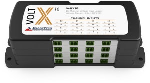 The new VoltX Series consists of 4, 8, 12 and 16-channel, battery powered, DC voltage data logger with a reading rate of up to 4 Hz. Improvements include the elimination of an interface cable (uses standard USB-A to Micro USB), increased memory for more readings and increased download speed. This easy-to-use device features an 18 month typical battery life, user replaceable battery and programmable engineering units. The storage medium is non-volatile solid state memory, providing maximum data security even if the battery becomes discharged. To maximize memory capacity, users can enable or disable channels. For easy identification, each channel can be named with up to a ten digit title. Using the MadgeTech Software, starting, stopping and downloading from the VoltX Series data loggers are simple and easy. Graphical, tabular and statistical data is provided for analysis and data can be viewed in multiple units, using the Engineering Units function. The data can also be automatically exported to Excel® for further calculations.