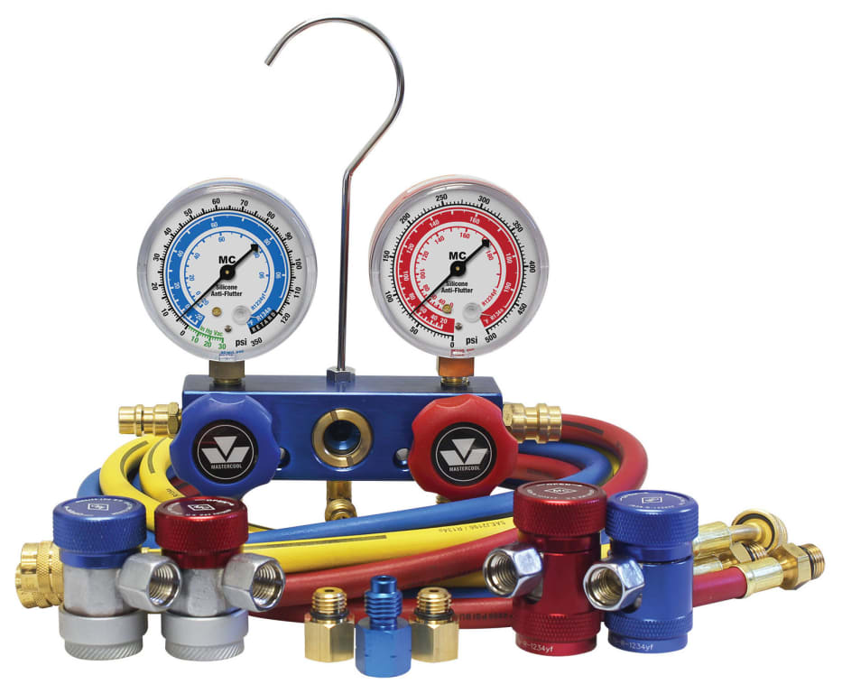 R1234yf, R134a Aluminum Manifold 2 1/2-Inch Gauge Set - 60-Inch Hoses