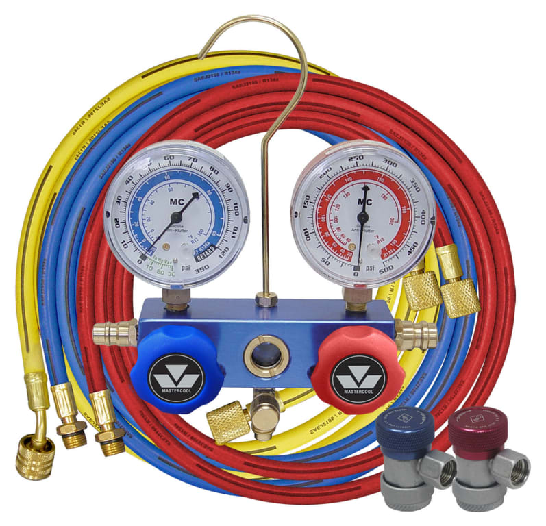 R134a 2-Way Aluminum Manifold 2 1/2-Inch Gauge Set with Manual Couplers - 60-Inch Hoses