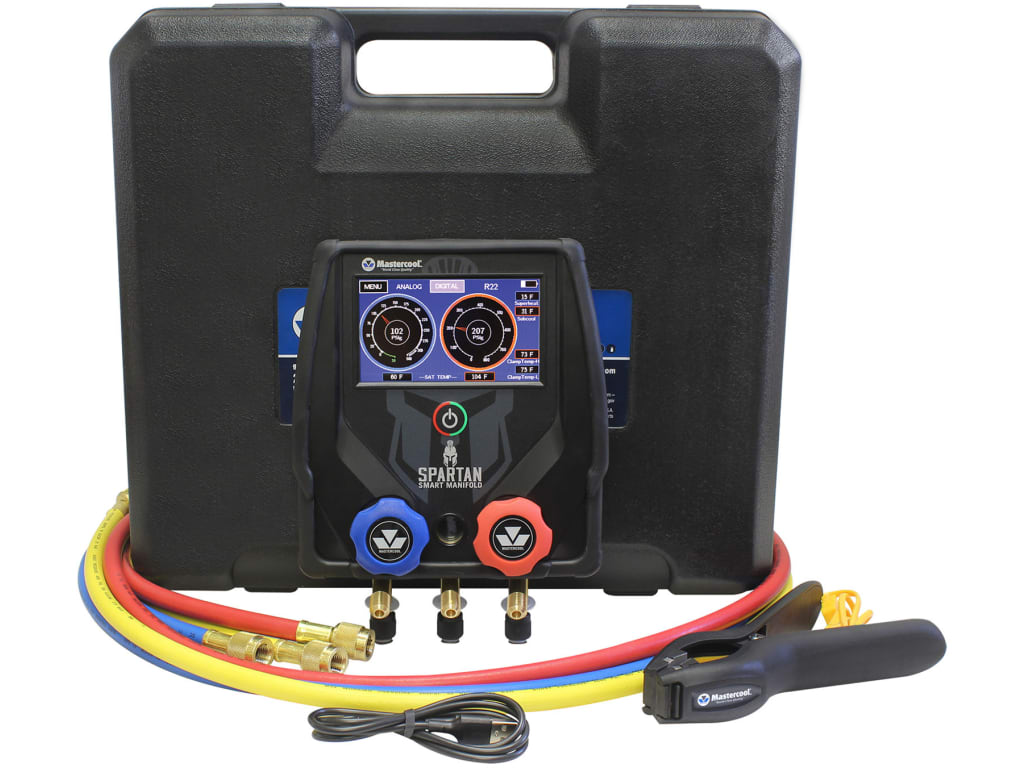 Mastercool introduces the new SPARTAN series smart manifold with Bluetooth wireless technology. This smart manifold is equipped with a 4" color touchscreen LCD, allowing the user to navigate through all of the screens and options with a quick slide of their finger. Now with a built-in premium vacuum sensor and an accuracy down to 1 micron, there is no need for additional equipment to properly diagnose and service your A/C system.