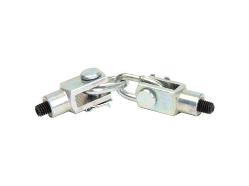 The small Chain Link Assembly (short) is fitted with a 10-32 UNF female thread and supplied with a male grub screw. It is fixed to other grips thereby allowing a flexible connection, which is essential to avoid damaging light-capacity loadcells when tightening grips.