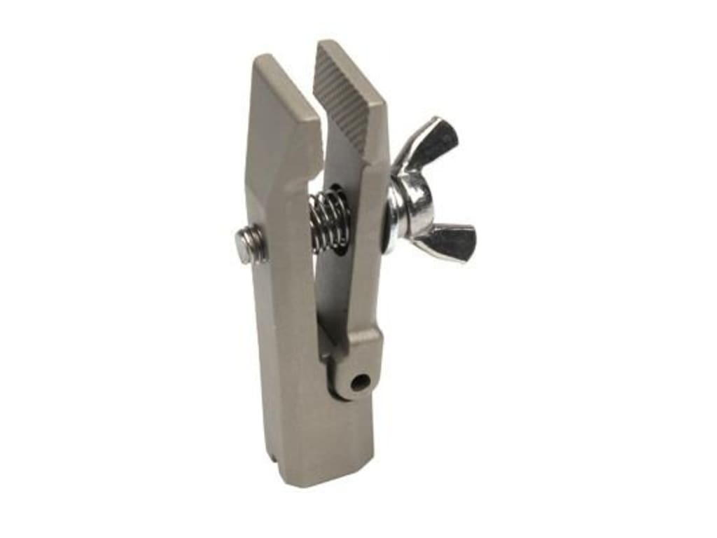 One jaw is fixed and the other jaw is on a spring-loaded hinge that opens to 15mm. Fast installation and release of samples are achieved by manually tightening the wing nut.