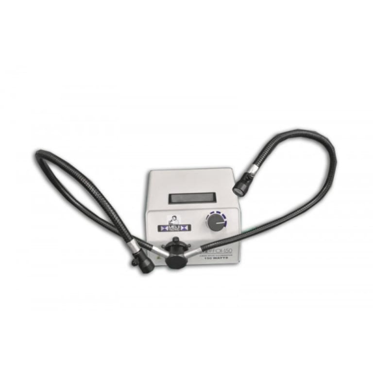 The FQ150/220 allows a uniform halogen illumination of focused white light which can be used in different applications. Included is an on/off intensity control which allows easy adjustment of intensity. In addition, the lock-in feature allows light guides to stay in place and permits the illuminator to operate on its back without fear of falling off.