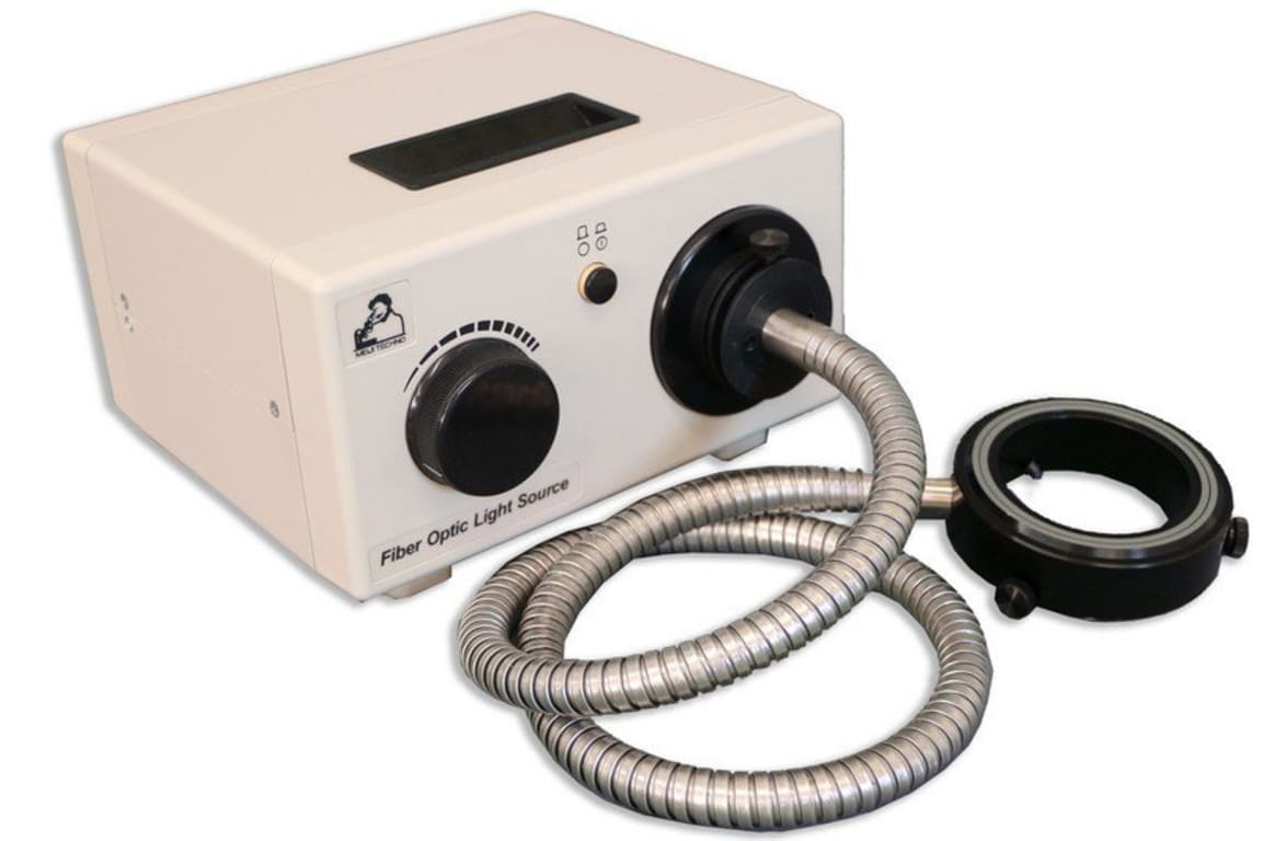 The Meiji Techno FT192 is an annular ring fiber optic illuminator. Featuring a 150 watt quartz halogen lamp, the FT192 contains a dimmer control on the unit’s base, enabling users to easily adjust the level of brightness for 0 to 100%. Emitted light has a color temperature of 3200K.
