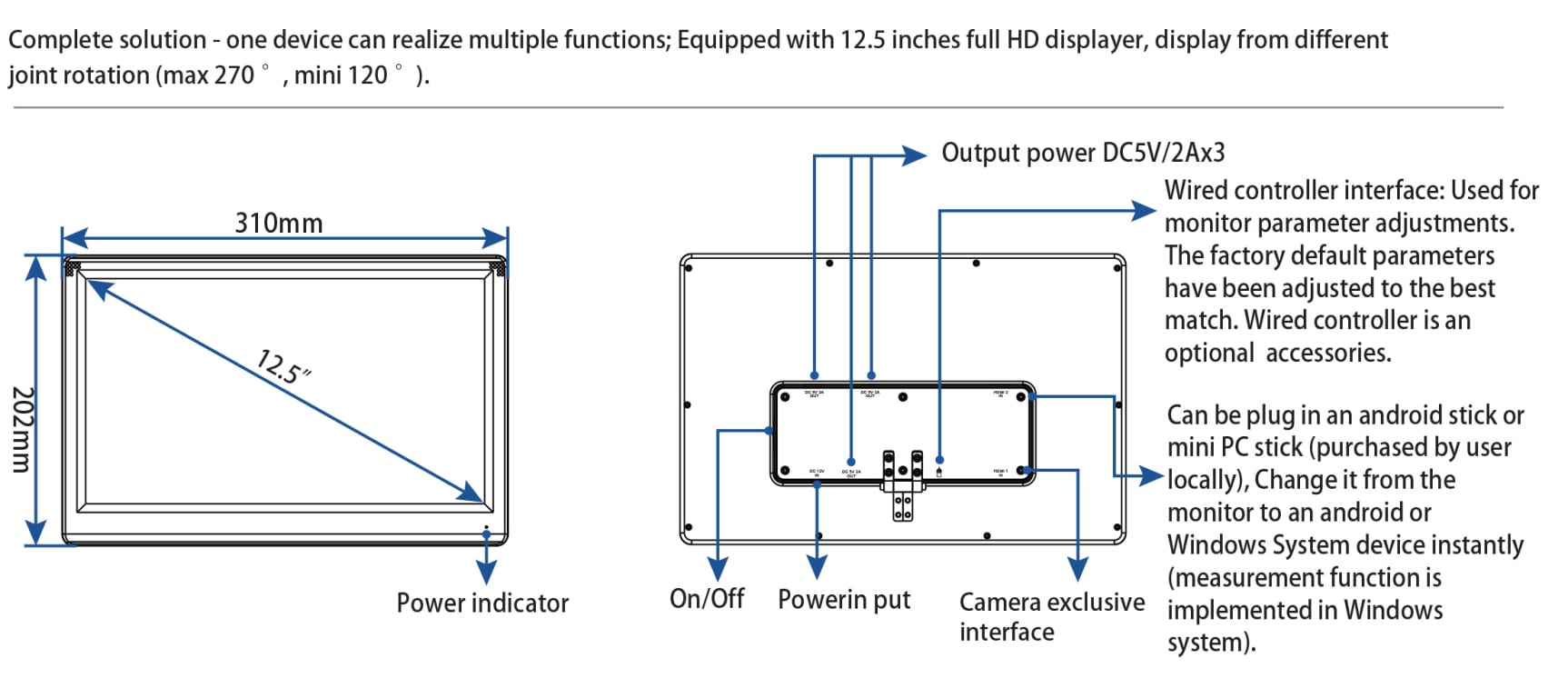 HD200-M is a professional imaging system of camera integrated with displayer, which uses high-performance CMOS on image capture and adopts high-resolution fog LCD to truly restore images. With multi-angle and multi-joint rotation, the display is designed flexibly and easy to use, which meets the requirement of fast and efficient inspection. Equipped with wired controller to facilitate operation.