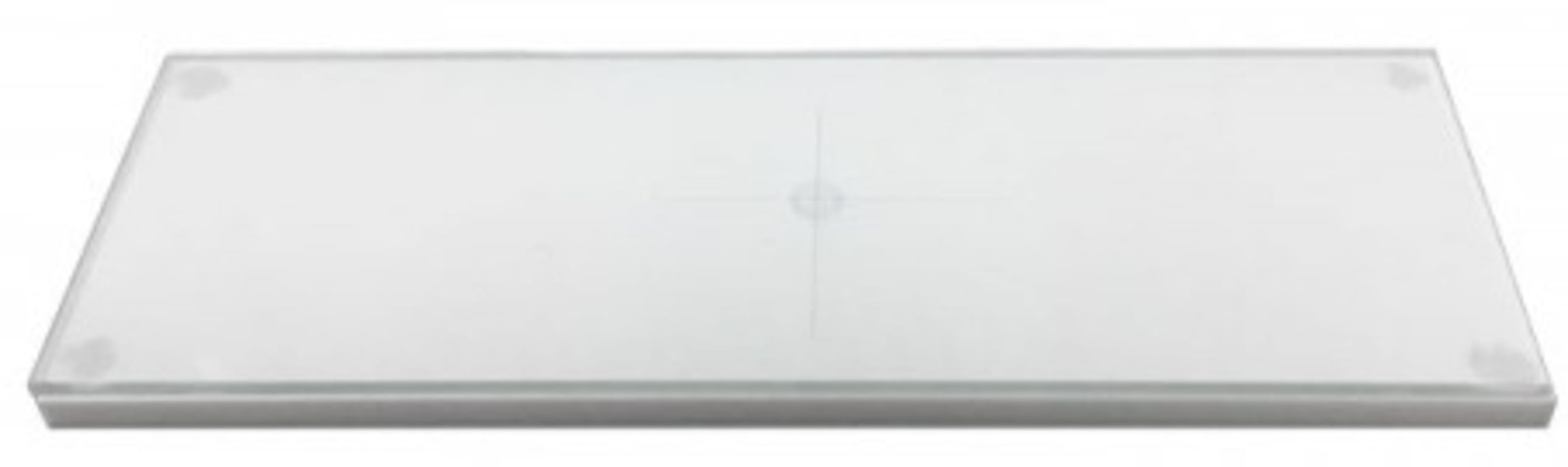 A typical eyepiece micrometer would be a 5mm or 10mm linear scale featuring 50 or 100 divisions. Before using the eyepiece micrometer it is necessary to calibrate the eyepiece micrometer using a stage micrometer. A stage micrometer is simply a microscope slide with a known dimension etched upon its surface. The stage micrometer is placed directly on the stage of the microscope and brought into focus.