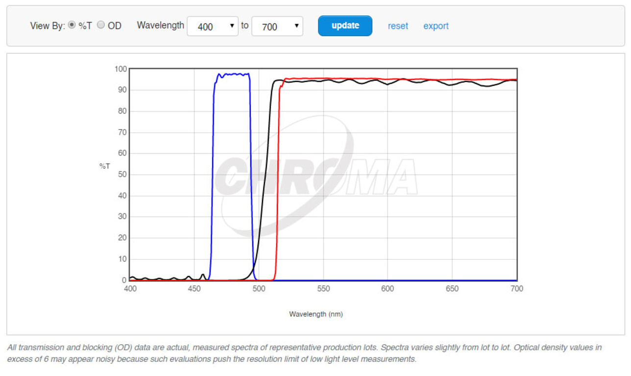 The MA879 is a basic blue CHROMA (19002) filter-AT-GFP/FITC Longpass that is mounted in TC-FS/PT#4. Exciter (EX): AT480/30X, Dichroic (BS): AT505DC Emitter (EM): AT515lp. This is included in all TC5500C and TC5600C models.