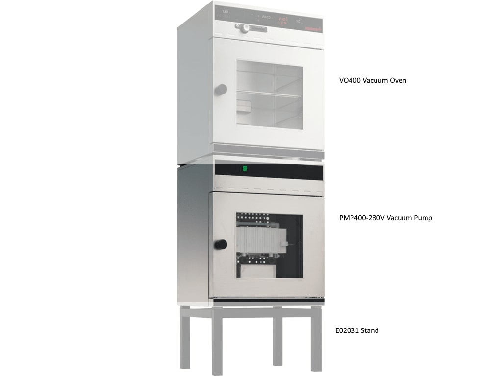 Noise-insulated vacuum pump module, as above, however with built-in pump, 230 V, 50/60 Hz, (pump B04133 for VO200 and pump B04134 for VO400 and VO500).