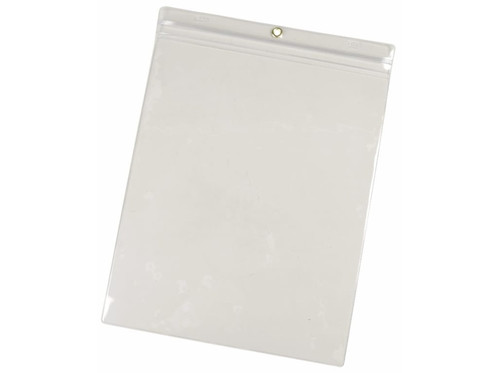 The Menda 35048 is a clear, 9-3/4" x 13-1/4" vinyl pouch sold for 25 per pack. It is ideal for use as a job ticket holder, designed to hold "A" size 8 1/2" x 11" documents. Manufactured from 12 mil (0.012") clear vinyl, durable, providing long life and clear, so the document can be read without opening. It is embossed with Menda and Made in America along the top header. Ideal for sorting paperwork in purchasing, accounting, human resources, and even shipping!