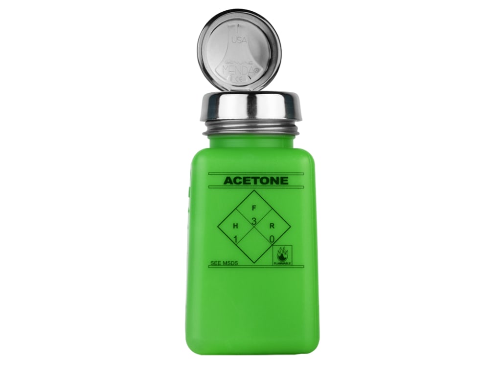 HDPE Square Bottle w/One-Touch Pump, Printed w/Acetone, 6oz, Green