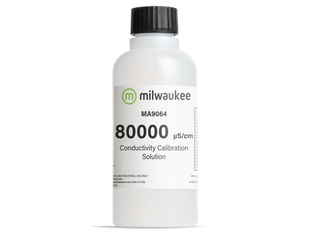 MA9064 is a lab-grade 80,000 µS/cm conductivity solution standard prepared against a NIST traceable potassium chloride solution that allows you to recalibrate your conductivity meter or tester. Check your meter or tester's manual to find the correct calibration standard for your meter.