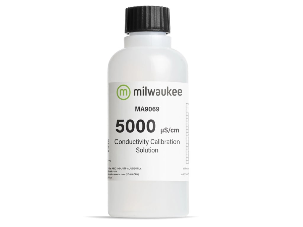 MA9069 is a lab-grade 5000 µS/cm conductivity solution standard prepared against a NIST traceable potassium chloride solution that allows you to recalibrate your conductivity meter or tester. Check your meter or tester's manual to find the correct calibration standard for your meter.