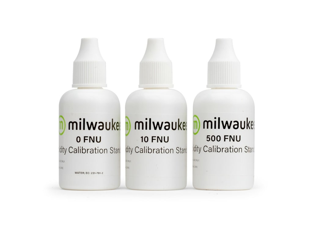 The MI515-100 liquid reagent calibration kit includes high-quality reagents that are ready-to-use with Milwaukee's Turbidity Meter MI415. The kit contains: 1 x 30 mL 0 (FNU), 1 x 30 mL 10 (FNU), 1 x 30 mL 500 (FNU). Simply place the vial into the cuvette holder, press "cal" and follow the prompts for the 0, 10 and 500 (FNU) calibration. Once calibrated, your meter is ready to go.