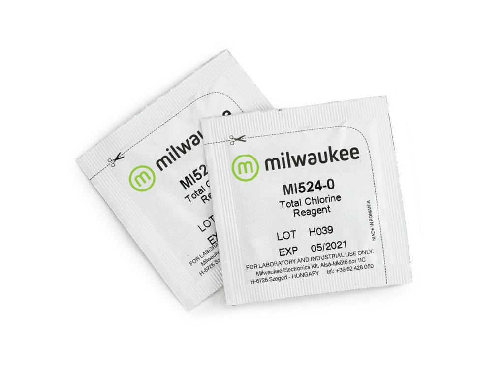 The Total Chlorine powder reagent kit includes high-quality reagents that are ready-to-use with MW11 Total Chlorine Tester. The reagents use the DPD Method with a reaction between chlorine and reagent causing a pink tint in the sample. Simply add the reagent to the sample, wait for the reaction to take place and the photometer determines the concentration based on the color. The reagents are designed for use with samples that have an expected range of 0.00 to 3.50 ppm (mg/L) total chlorine.