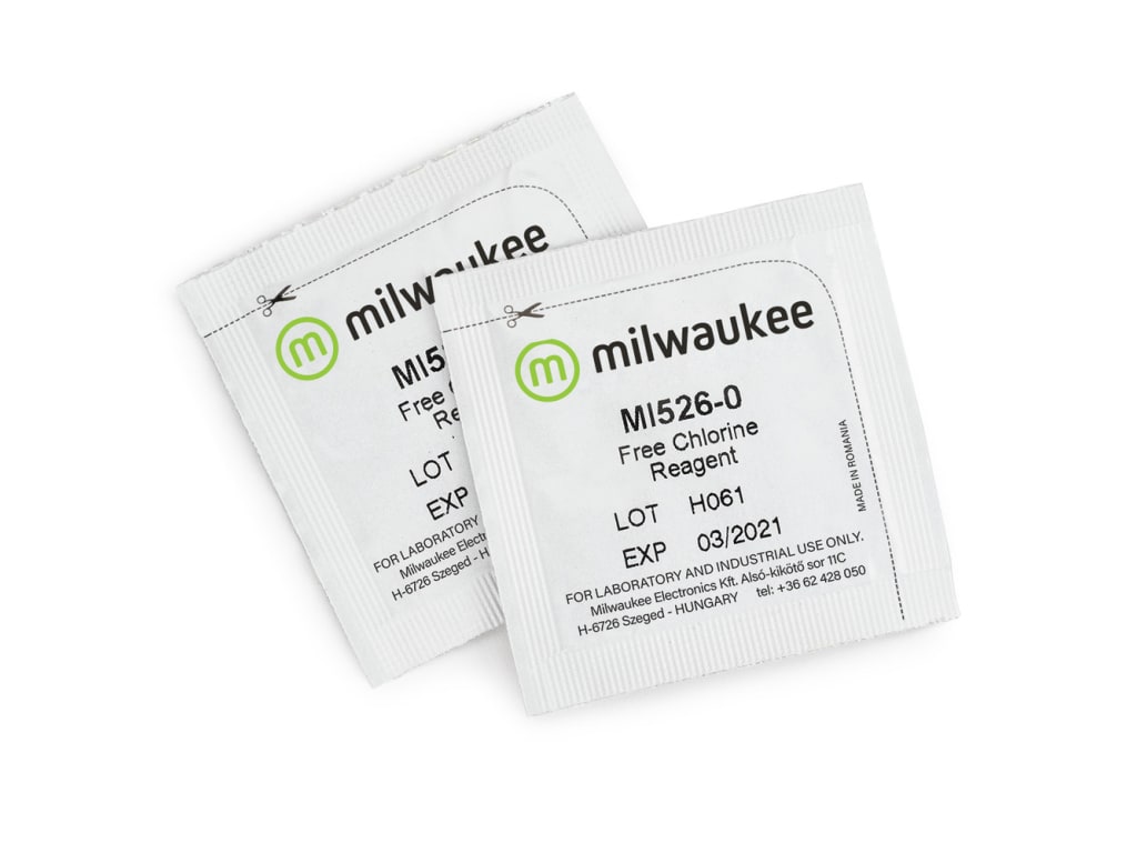 The Free Chlorine powder reagent kit includes high-quality reagents that are ready-to-use with Milwaukee's MW10 Free Chlorine Meter. The reagents use the DPD Method with a reaction between chlorine and reagent causing a pink tint in the sample. Simply add the reagent to the sample, wait for the reaction to take place and the photometer determines the concentration based on the color. The reagents are designed for use with samples that have an expected maximum range of 0.00 to 5.00 ppm free chlorine.