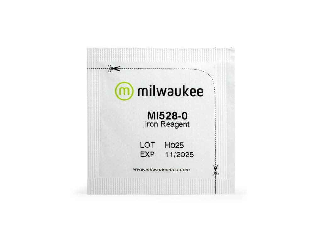 The MI528-25 Iron Powder reagent kit includes high-quality reagents that are ready-to-use with Milwaukee's MW14. The MW14 meter and reagents use the Adaptation of the USEPA Method Phenatroline 315B. The reaction between Iron and the reagent causes an orange tint in the sample. Simply add the reagent to the sample, wait for the reaction to take place and the photometer determines the concentration based on the color. The reagents are designed for use with samples that have an expected range of 0.00 to 5.00 ppm (mg/L).