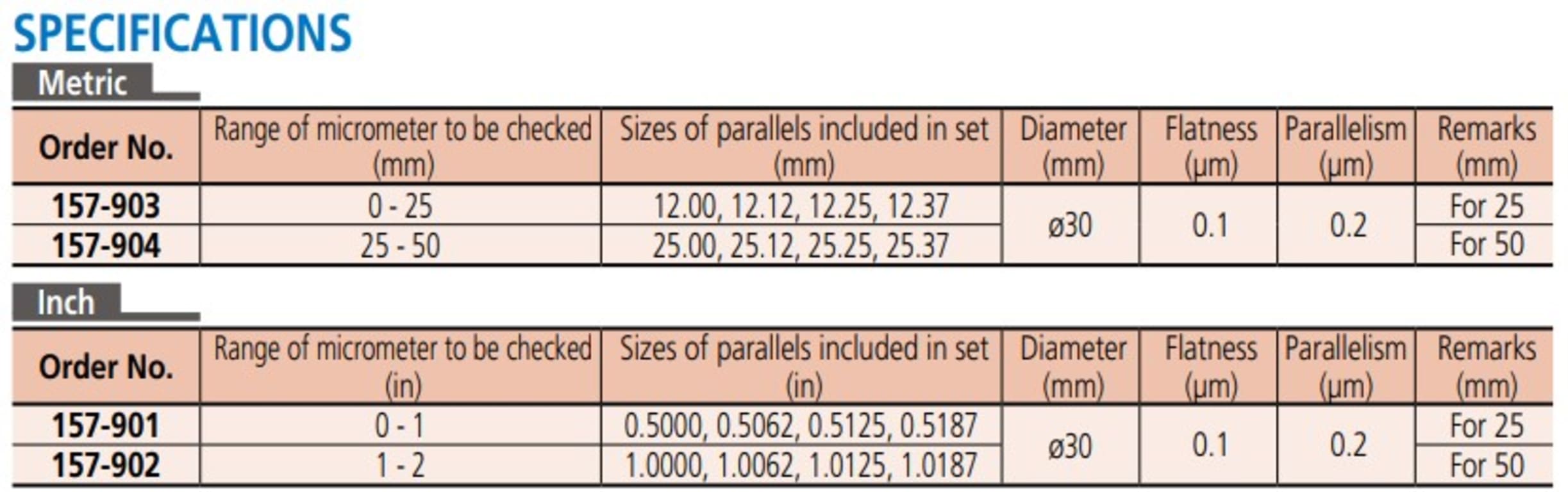 Mitutoyo 157-904 Optical Parallel Set for Micrometers 25-50mm