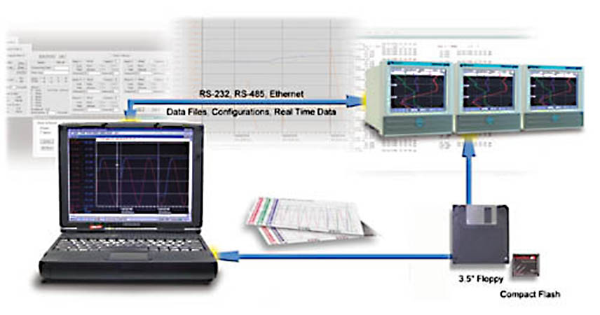 Recorder configurations are easily generated using Companion Software and can be downloaded to your recorders storage media and transferred to the recorder or transferred directly over ethernet or serial line communications. Monitor, configure and control up to 32 units with the RS485 Modbus option or control from remote locations using a modem connection. Whatever the application, Companion Software puts you in complete control.