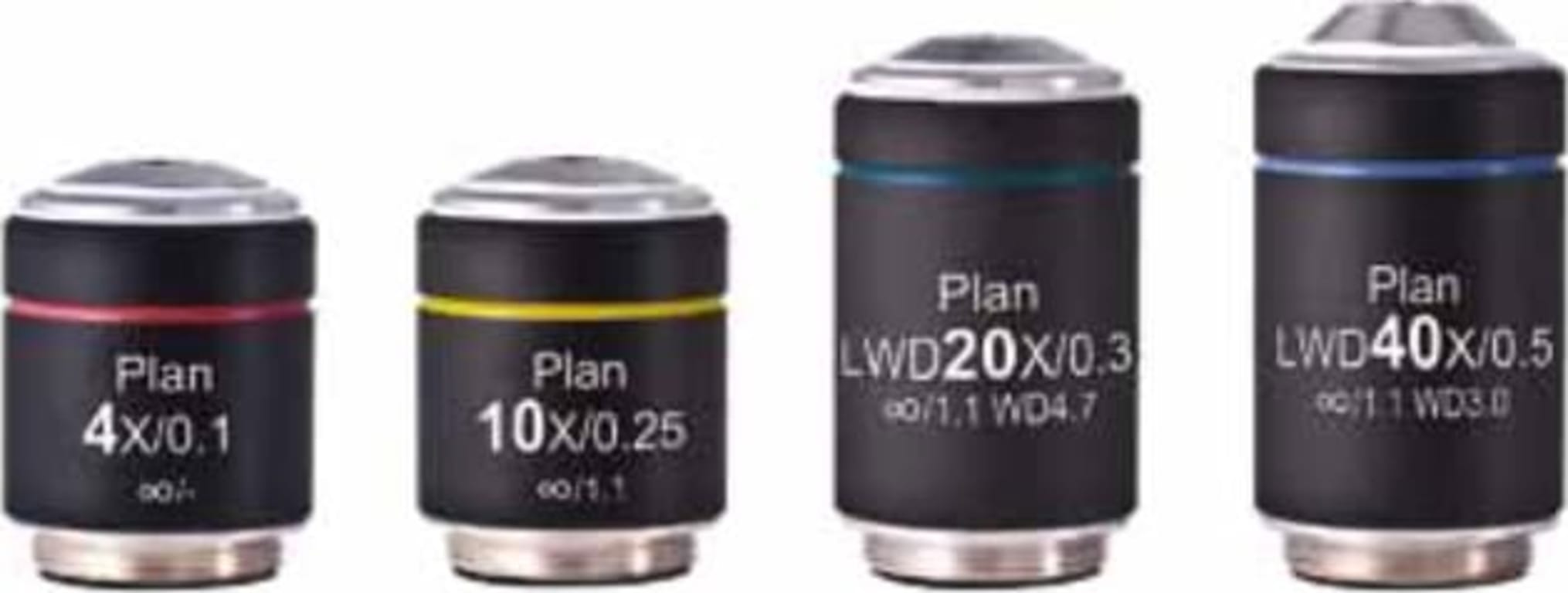 The Motic 1101001707101 is a CCIS Plan Achromat PL objective with 4X magnification, 0.1 numerical aperture, and 12.6mm working distance.