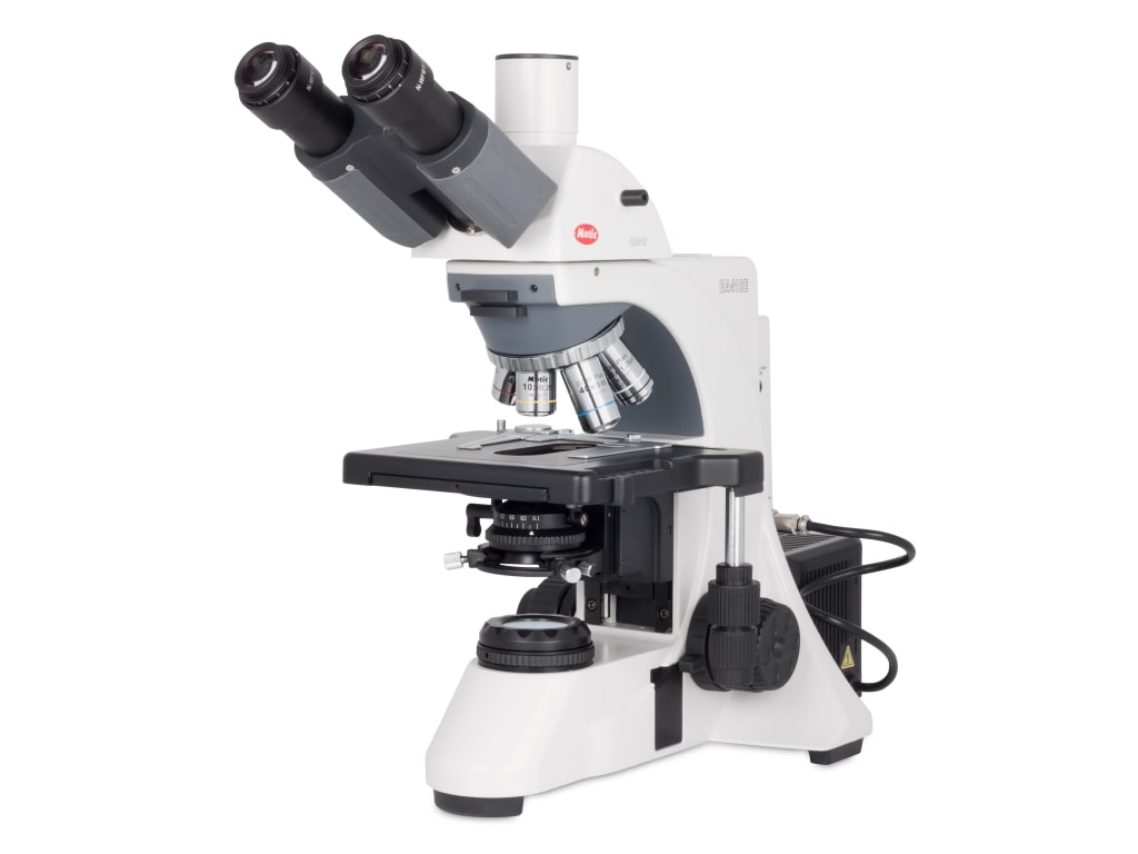 This version of the Motic BA410E is a sextuple microscope with a trinocular head and EC-H PL4X, EC-H PL10X, EC-H PL40X S, EC-H PL100X S-oil objectives for professional research. Universities and laboratories with applications in hematology, cytology, and histology will benefit from this flexible microscope platform with a superb performance in optics and mechanics.