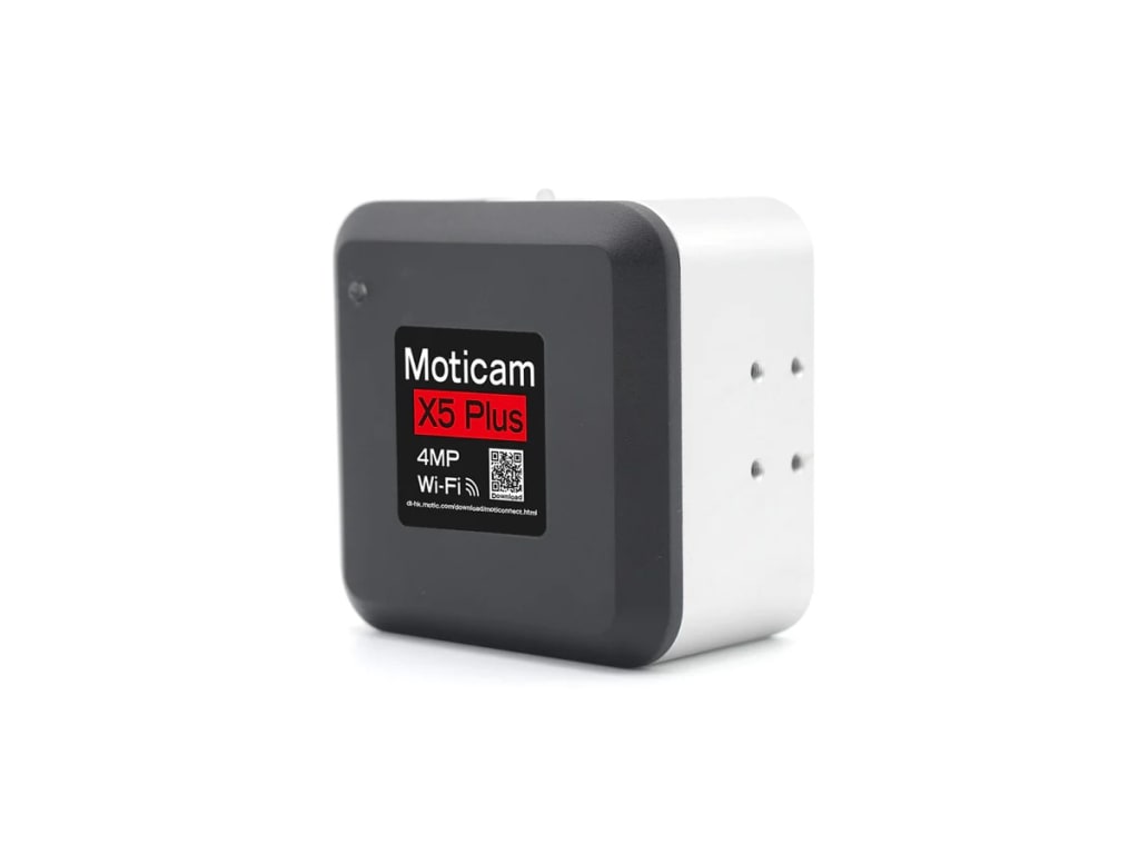 The Motic Moticam X5 Plus is a 4 MP digital microscope camera with Wi-Fi and ethernet data transfer. The Moticam X5 Plus turns your microscope into a Wi-Fi station, allowing you to share your images with up to six devices at the same time by logging into MotiConnect from your tablet or smartphone.