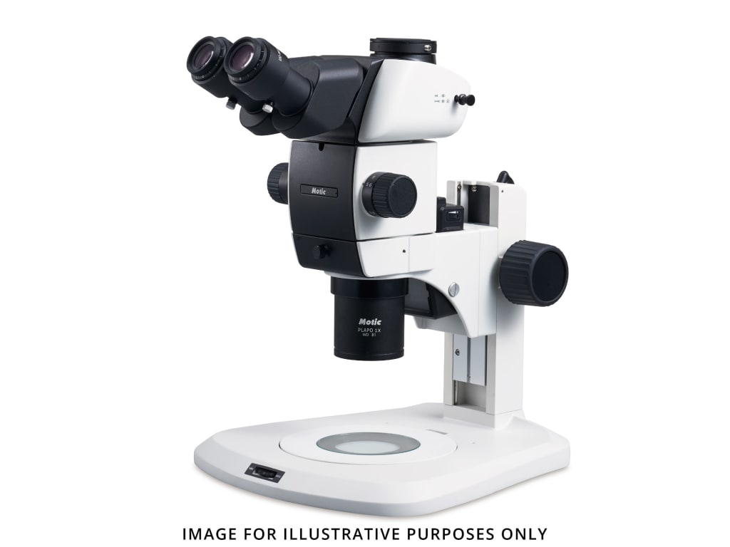 Motic’s SM7 ACHROmatic features a Galilean Optical Zoom System, also known as Central Main Objective (CMO), denoting an Infinity Optical System. For demanding, routine imaging requirements, a Plan-Apochromatic objective 1X (WD 81mm) is available with standard 10X/22 eyepieces, and an 8x to 56x zoom range which offers viewers one of the highest zoom ranges in its class. High-Quality 2D color reproduction and high-resolving power result from the SM7’s superior optical design. Low distortion, longer working distance, multiple lens combinations, superior 10-click mag selector, and ergonomic design offer users the best observation experience across a wide variety of samples.