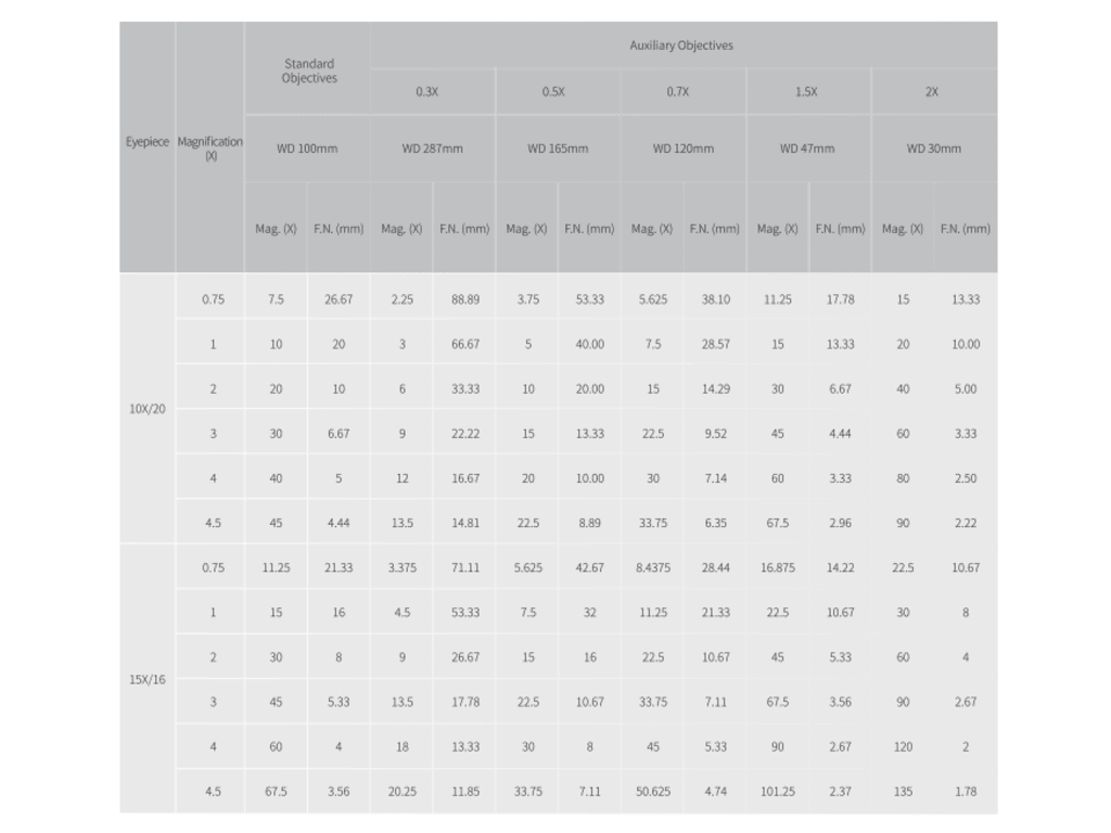 • 0.75X - 4.5X objectives