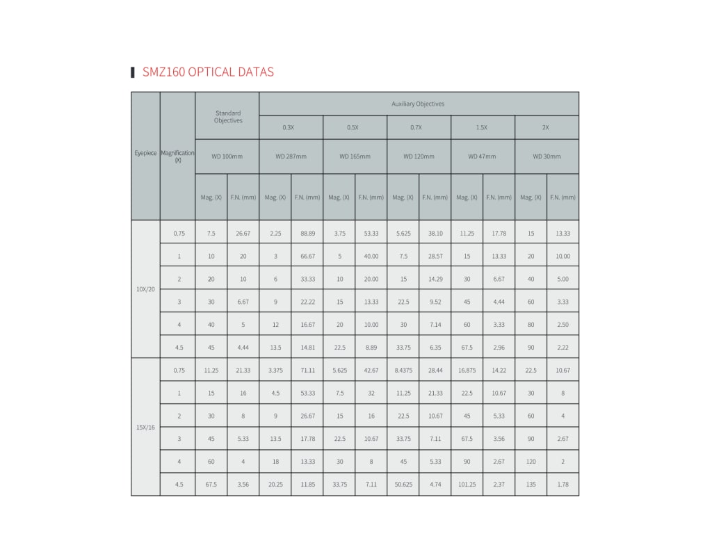Motic SMZ-160-TLED Accessories