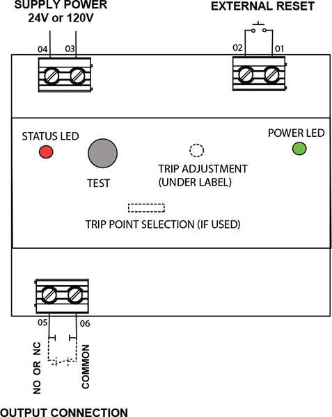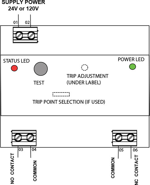 • Setpoint options include factory-adjustable setpoint from 5 mA –100 mA or "TR3 Tri-Set" models with field-selectable 5/10/30 mA settings