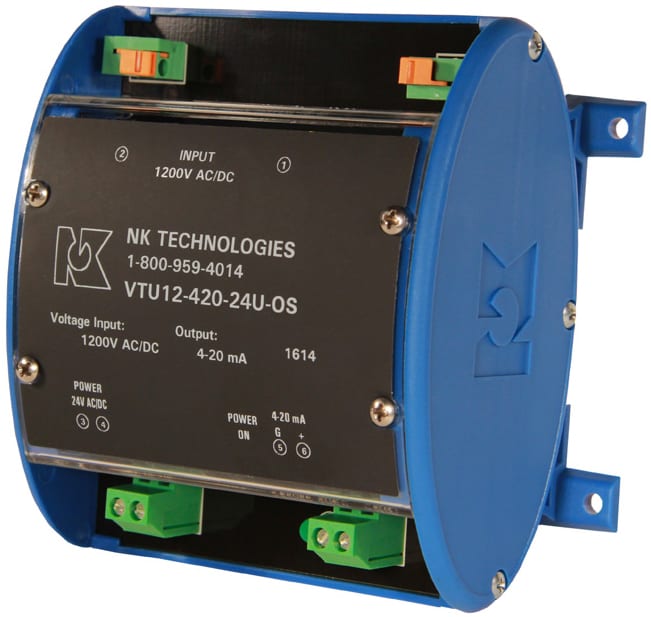 The VTU series of voltage transducers provide very high accuracy and safety in a panel or DIN rail mounted housing. One sensor design can measure DC or AC circuit voltages to 1200 volts, and produce an analog signal directly proportional to the voltage connected. A very valuable tool to spot issues with power generation (conventional and alternative sources) like brown outs and phase loss. The voltage will be present on the line side of a disconnect even when the breaker or switch is open.