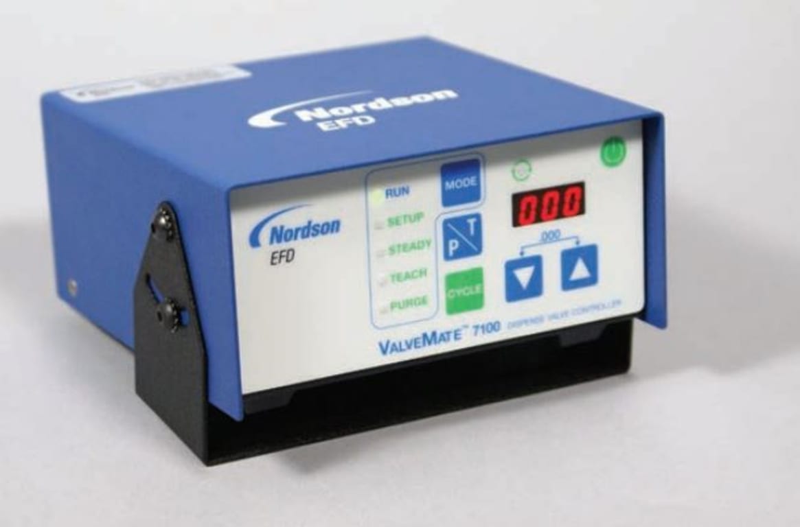 The EFD ValveMate 7100 controller is a fast, convenient way to adjust valve open time in increments as small as 0.001 seconds, right at the dispensing station. The result is exceptional process control without time-consuming programming or mechanical adjustments that require the production line to be shut down.