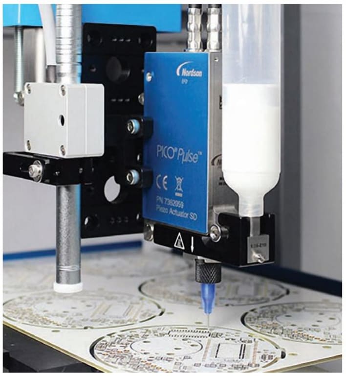 The PICO Pµlse contact dispense valve delivers faster, more precise dispensing with less turbulence for greater fluid deposit consistency, placement, and process control. Dispense micro-deposits as small as 0.5 nL at up to 1000Hz continuous with up to 1500Hz maximum bursts* - an industry best in class.