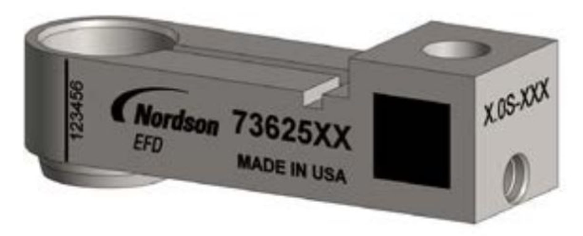 Use the fluid body assembly with Pµlse non-contact jet valves or Pµlse contact dispense valves. Standard flat nozzle fluid body assembly is suitable for most fluids.