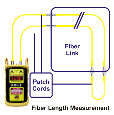Fiber Length Measurement. The BOLT-NL uses a “round robin” technique for fiber measurement; in other words, it uses two optical fibers in the same fiber cable looped back with a patch cord at the far end of the link. The round trip time is converted to kilometers, then the BOLT-NL automatically divides the round-trip length by two to give the end-to-end length of the fiber cable. It is not neccessary to test each fiber for length; the length measurement applies to all fibers in cable.