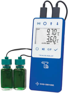 Use the included hook-and-loop strip to mount the probe to the inside of a freezer. Micro cable on the probe permits freezer door to close on it. Mount the logger to the outside of the freezer with the included magnetic strip or use the built-in bench stand to place on countertop. A large LCD displays probe and MIN/MAX temperatures. A low-cost subscription is required for TraceableLIVE use.