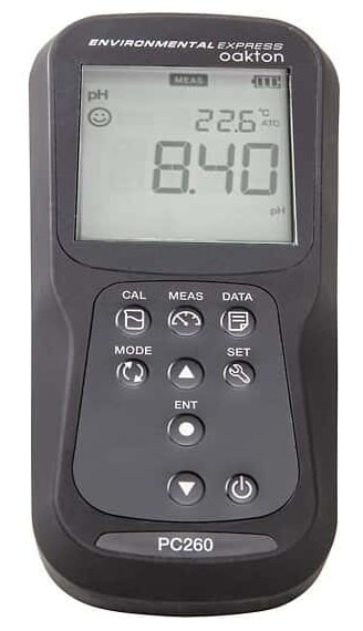 Get easy-to-read and accurate readings with auto-hold, auto-stable, and real-time measurements with stability indicators. The Environmental Express® Oakton® 200 series of water quality meters features an electrode status indicator, which shows the condition of the electrode after each calibration. Easily view electrode condition, reading stability, measured parameter, and temperature in one screen. Don’t worry about accuracy in fluctuating temperature-ATC ensures measurement accuracy. The simple user interface features adjustable auto shut-off time ranging from 1 to 30 minutes. Self-diagnosing meters display measurement and meter issues for fast fault finding and troubleshooting. Easily take measurements and conveniently store meter and electrodes with built-in foldable stand on the back of the meter. Two grooves on the side of the meter serve as electrode holders, to hold up to 2 electrodes. Choose from two series-the 250 series feature 500 data points while the 260 series features 1000 data points, a real-time clock, and USB communication.
