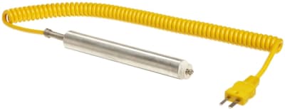 The Oakton Surface probes offer dual spring tips to provide positive contact with flat or slightly irregular surfaces. Include a 5-ft PVC coiled cord with strain relief that protects from repeated flexing and tugging. Ergonomic, easy-grip 5"L glass-filled nylon handle (unless noted below) provides maximum heat insulation and impact resistance. Finger stops on handle prevent probe from rolling and fingers from sliding when inserting probe into hard materials. The 316 stainless steel sheath (shaft casing) provides durability, strength, and maximum abrasion resistance. Rugged thermoset plastic miniconnector is compatible with all Oakton and Acorn thermocouple thermometers. Temperature Range: Range:–418 to 1200°F (–250 to 649°C); Junction: exposed; isolated; Response time: 30 sec; Dimension: 4.5" Tip Length; 0.63" diameter. These probes feature a rugged thermoset plastic mini connector and are compatible with all Oakton Digi-Sense and Acorn thermocouple thermometers. Connectors and cord are color-coded based on thermocouple type: type K yellow.